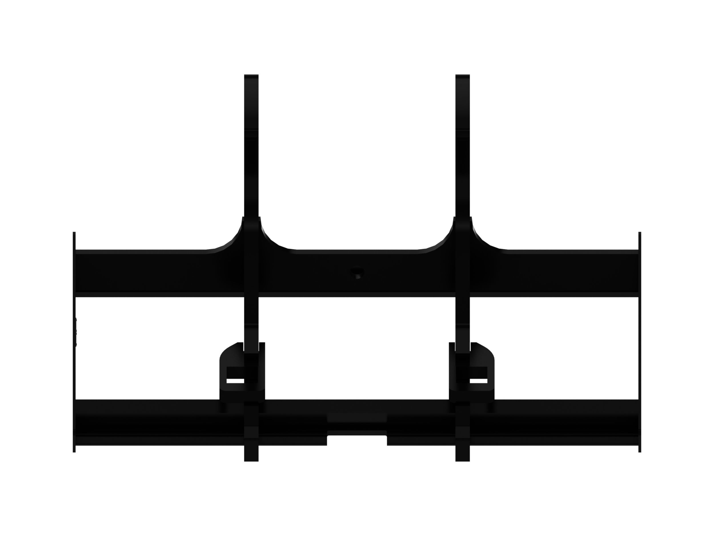Notched rail-type carriage design allows fork tines to be easily re-spaced or changed and locked into place.
