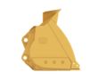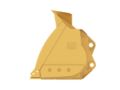 Spill guard prevents rock and other materials from spilling onto coupler interface and hydraulics.