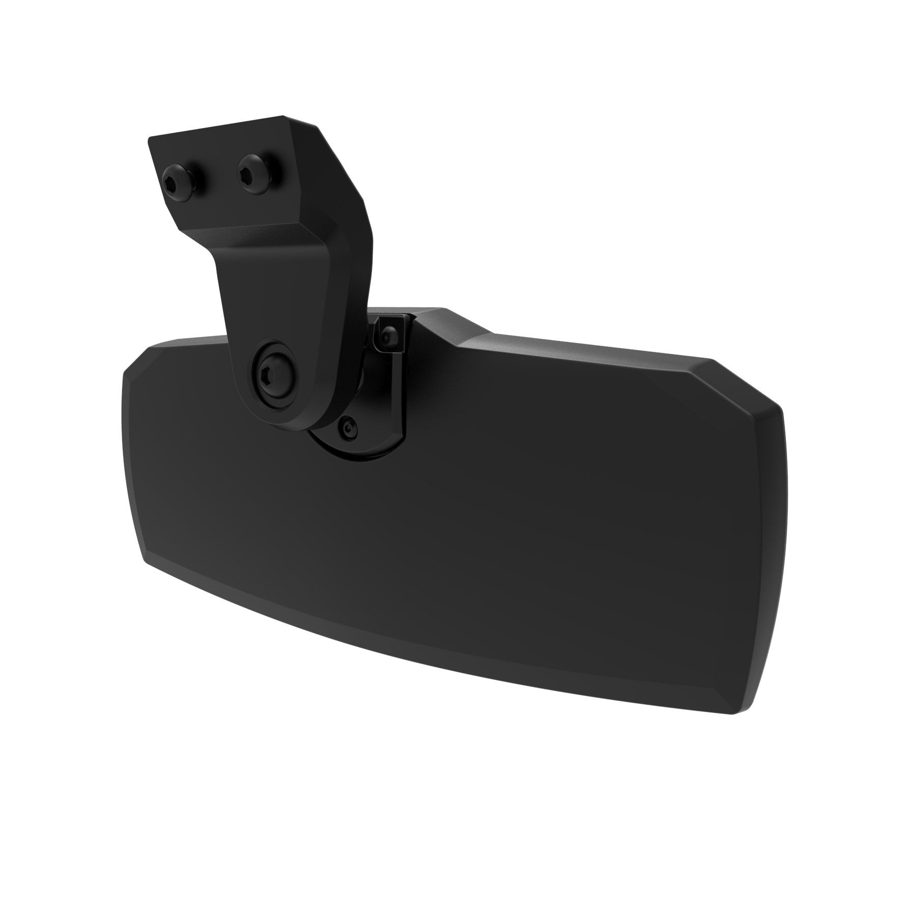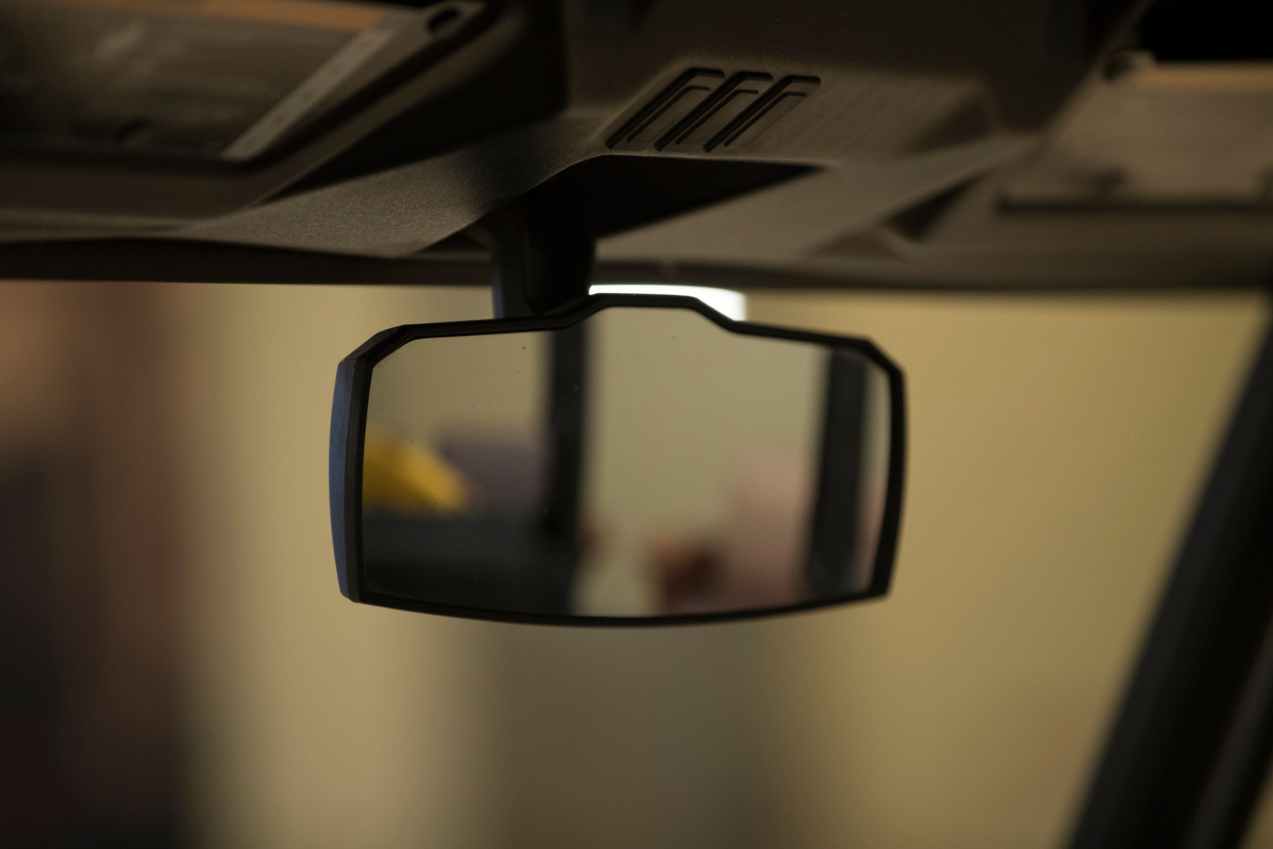 Maximizes visibility of area in rear of machine using a curved mirror.