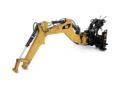In-cab operation increases productivity by reducing the amount of time required to reposition compared to traditional skid steer loader backhoes, allowing for faster cycle times than competitive units. The compact package of the machine and backhoe allows the operator to maneuver more easily in confined areas and leaves more trailer space for other Cat Work Tools.