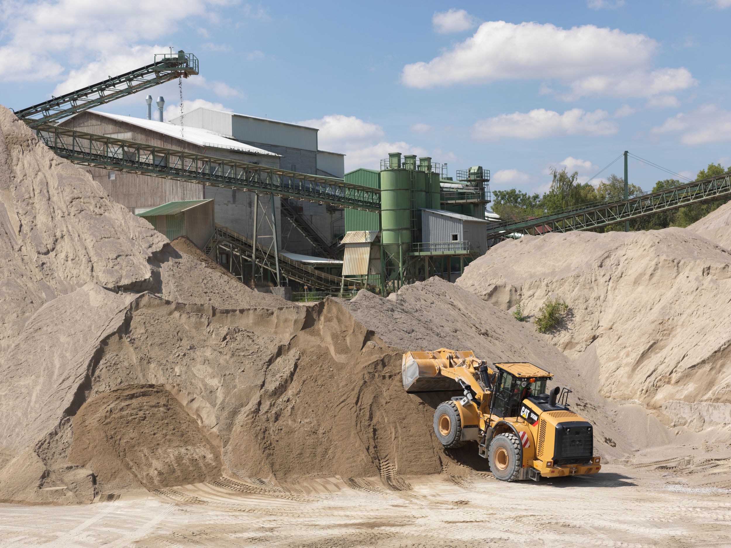 Aggregate packages are specialized offerings for specific loose aggregate rehandling applications, such as truck loading, hopper charging, stockpiling, and load and carry. Rehandling loose aggregate is less stressful to the machine, therefore payloads can be increased above other applications by installing larger buckets, counterweights and a scale system such as the Cat Production Measurement system. To do so, the Cat aggregate packages require some prerequisites in terms of correct application, machine configuration and conformance to Caterpillar payload policy. Misapplication of Aggregate Handlers may result in significant reliability and durability risk.
