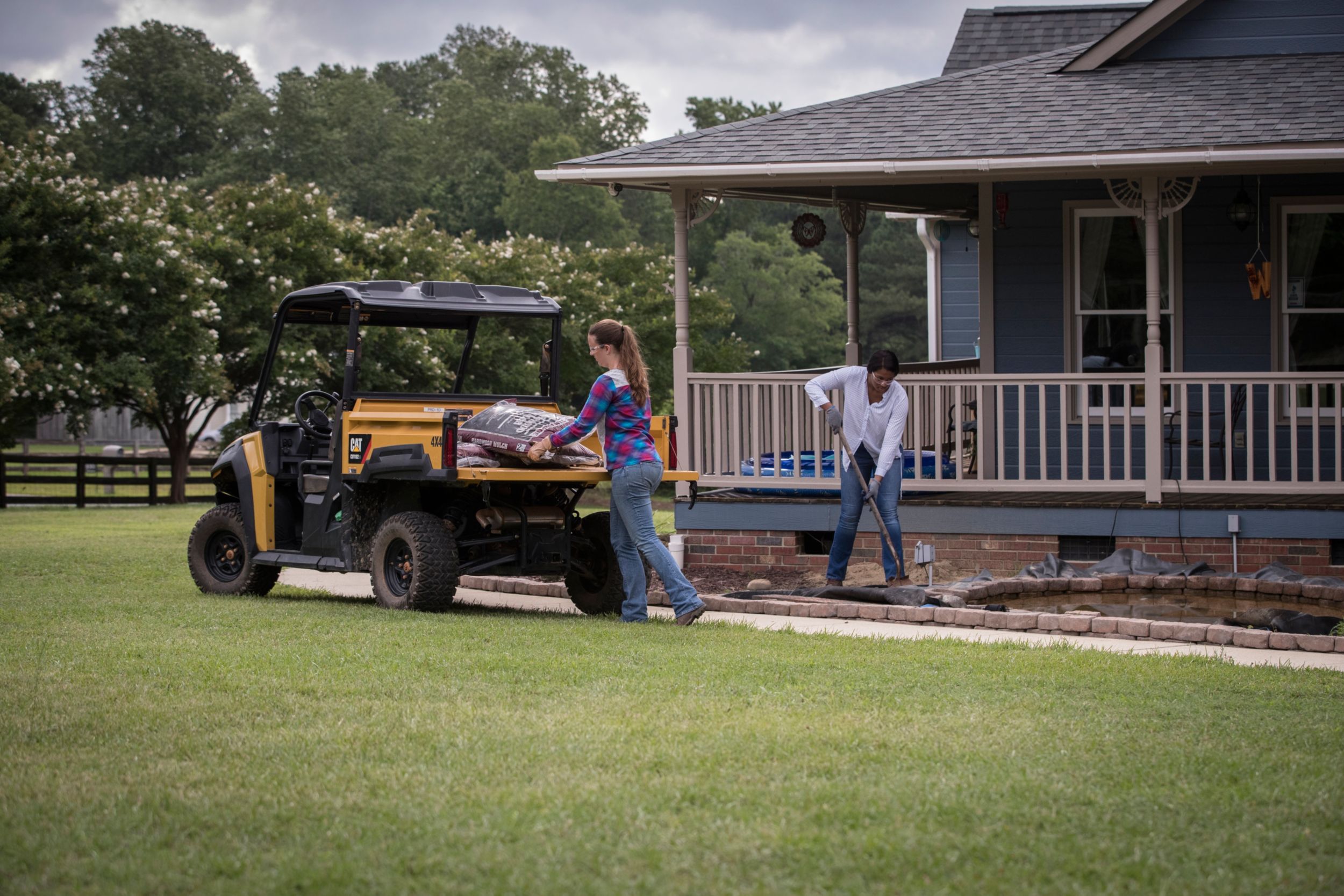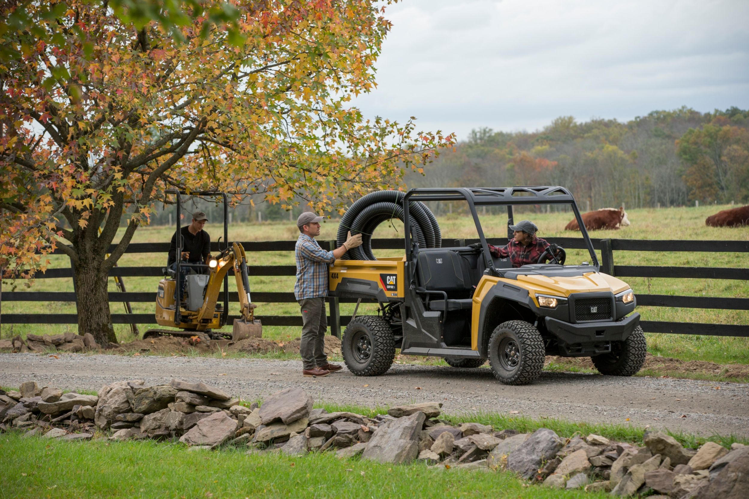 A rugged all steel cargo bed with 453.6 kg (1,000 lb) capacity and integrated tie down points is durably designed to handle a multitude of tasks. Smooth acceleration, clear sight lines and engine braking capability make the Cat® UTV well suited for hauling and towing. They feature a continuously variable transmission, tuned specifically for work applications, offering smooth transitions and the ability to handle loads. Additionally, the choice of two-wheel drive, four-wheel drive or four-wheel drive/lock modes permits the driver to match vehicle drive to ground conditions.