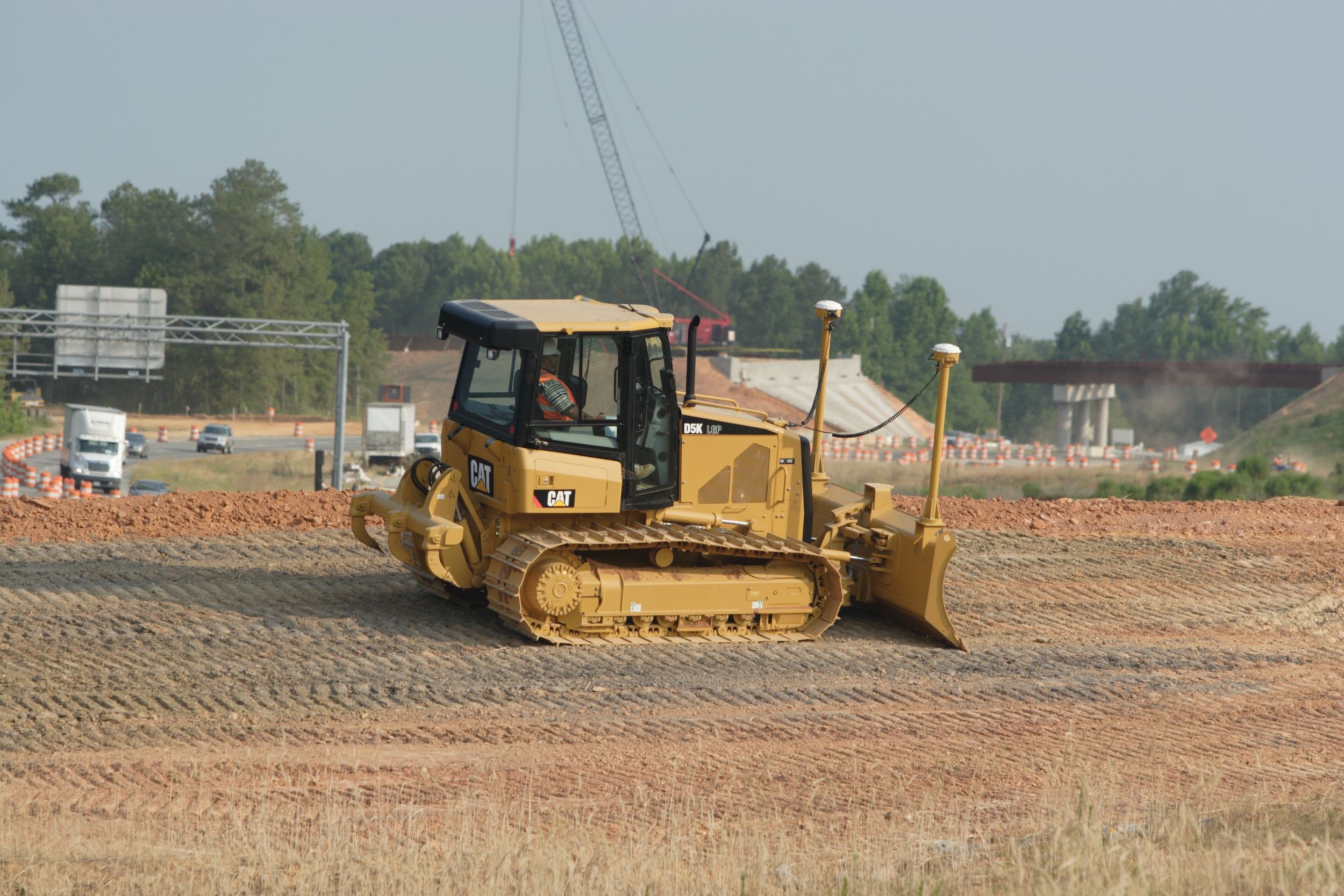The Cat® D5K Track-Type Tractor delivers superior performance and comfort while reducing your operating costs. The large spacious cab provides a comfortable work area. Intuitive seat-mounted controls are easy to use for greater job accuracy and efficiency. The innovative SystemOne undercarriage reduces maintenance time and costs - significantly impacting your bottom line. The AccuGrade Laser and GPS Systems help you get to grade faster, with fewer passes and less manpower. From the first cut to finish grade, the D5K sets the standard.