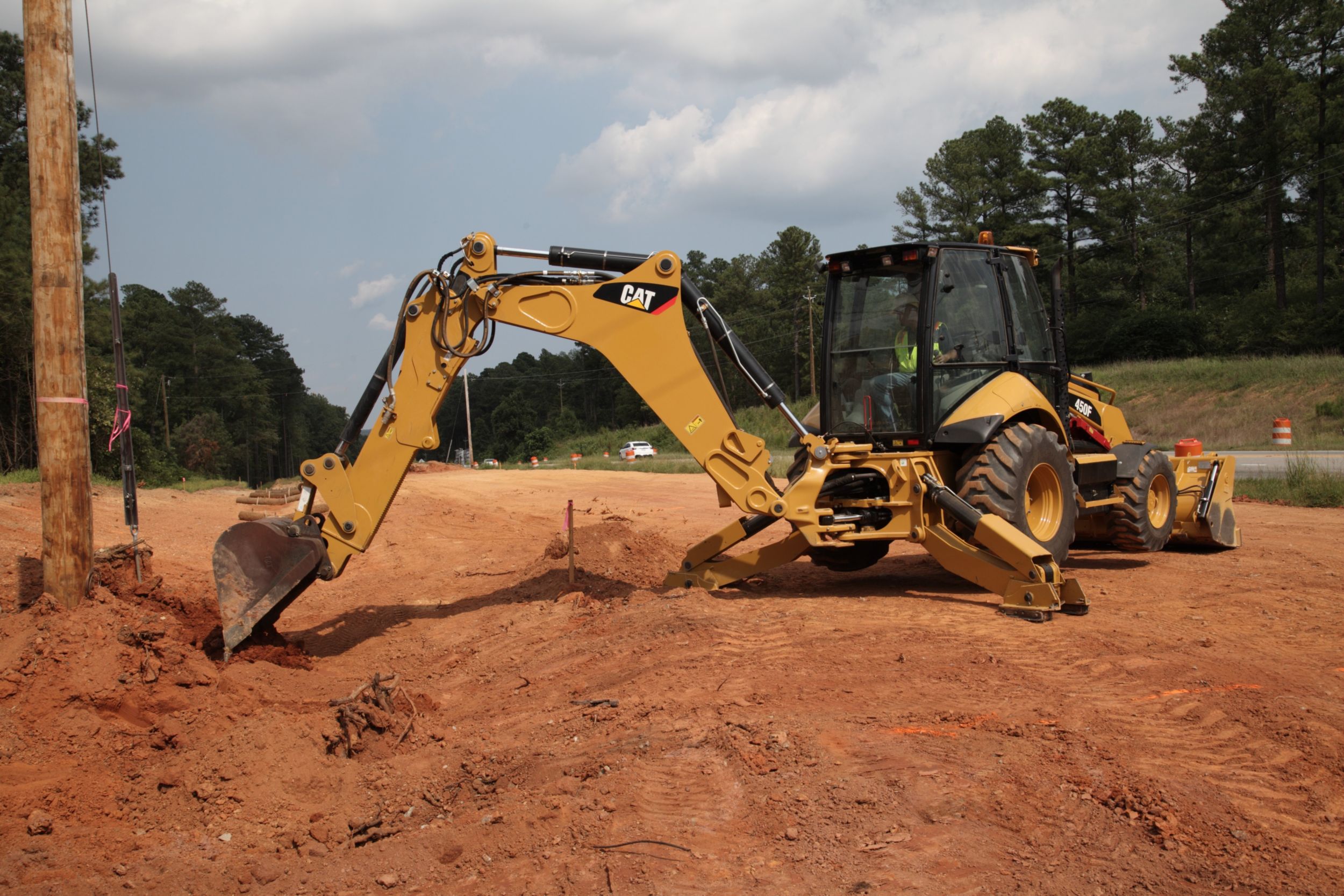 Explore the difference of a Cat Backhoe Loader. Spacious operator station features ergonomic joystick controls, ample legroom and an air suspension seat to keep you comfortable all day long. The Cat 450F is a powerful machine that meets performance targets through loader and backhoe productivity. Maneuverable and manageable on the job site, the 450F helps you get more done to improve your bottom line.