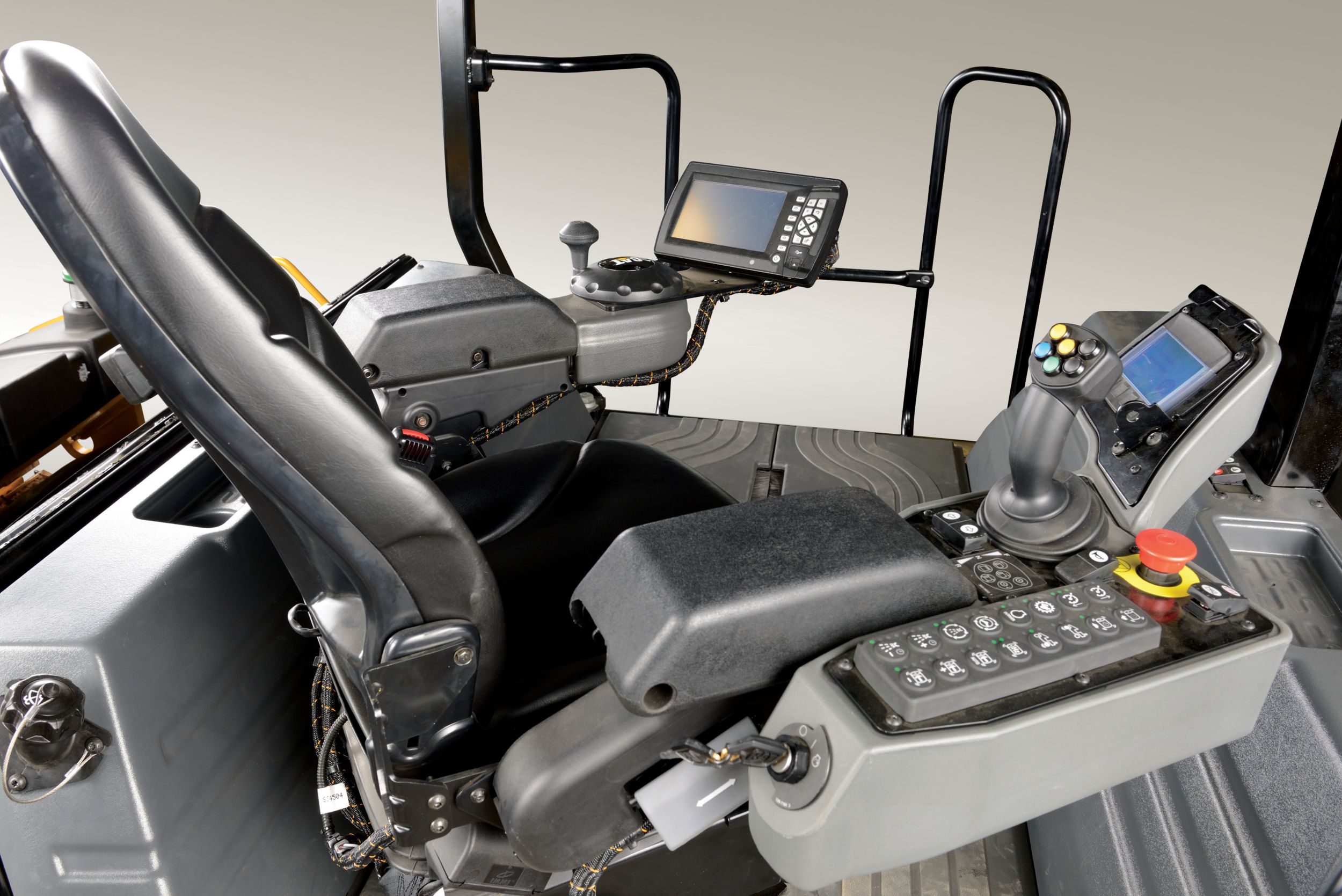 The console is integrated with the seat, providing fingertip access. Soft keys with tactile feel provide instant feedback to the operator for intuitive operation. The armrests are adjustable and can be tailored to the operator for additional comfort.