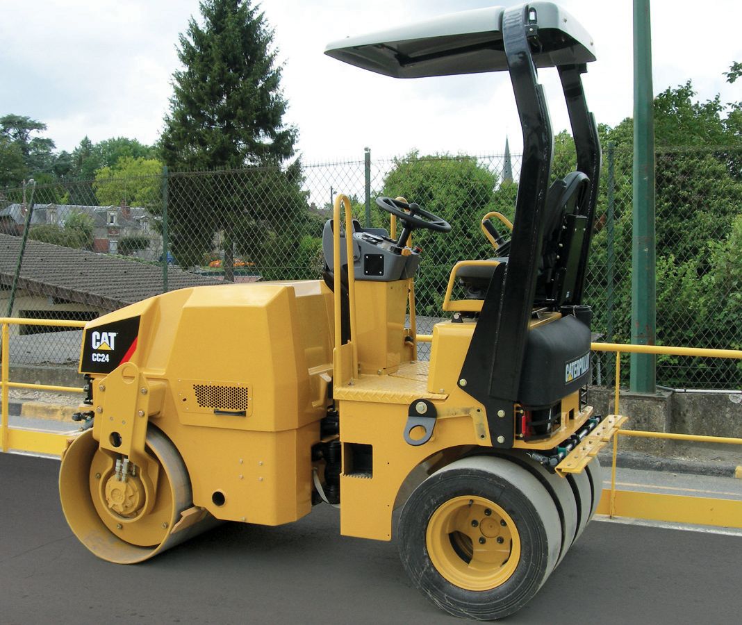 The CC24 is a versatile machine that can be used as the only vibratory roller on small sized jobs or on larger jobs as a support roller for high-production roller. The CC24 provides greater production capabilities with its 1200 mm (47") wide drum on the front and four 6-ply tires on the rear. Its high amplitude and drum width give it the capacity to achieve a tons-per-day production rate that make it an excellent match for shoulders, small parking lots, lane additions or other similar sized jobs. The pneumatic tires provide even compaction on uneven surfaces.