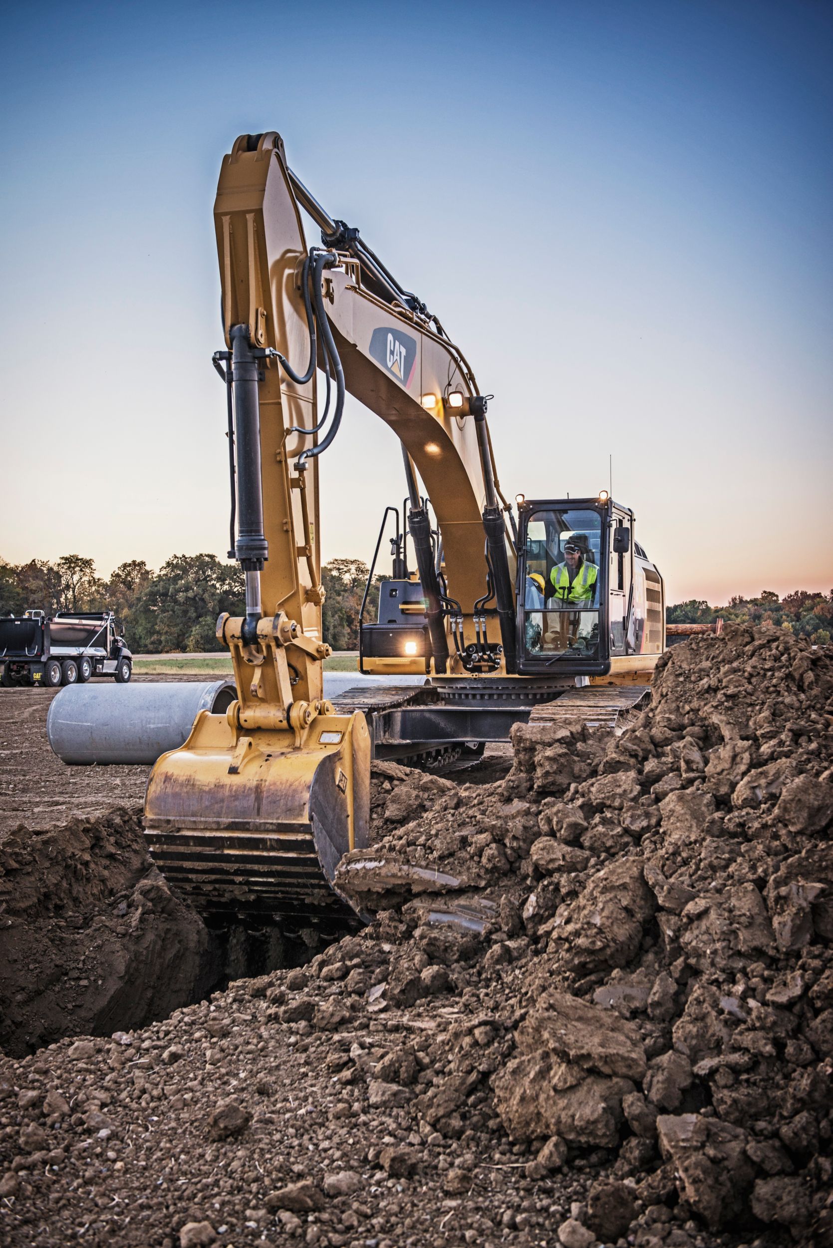 Your uptime and service intervals are increased with high-quality, durable, and reliable booms, sticks, and linkage pins. Each boom and stick is built with internal baffle plates for additional durability, and each undergoes ultrasound inspection to ensure quality and reliability for the tough work you do. There is one heavy-duty reach boom and two heavy-duty stick options: a 6.5 m (21'4") boom and a 3.2 m (10'6") and 3.9 m (12'10") stick. The heavy-duty reach boom covers all the applications this size of machine was designed to take on such as digging dirt, moving rock, placing pipe, and the endless amount of tasks that can be done with Cat hydraulic work tools. The longer 3.9 m (12'10") stick is best for deep trenching and truck loading or simply when more reach is needed in an application; the shorter 3.2 m (10'6") stick is best for shallow digging where more breakout force is needed or if you plan on primarily using hydro-mechanical work tools to complete your job.