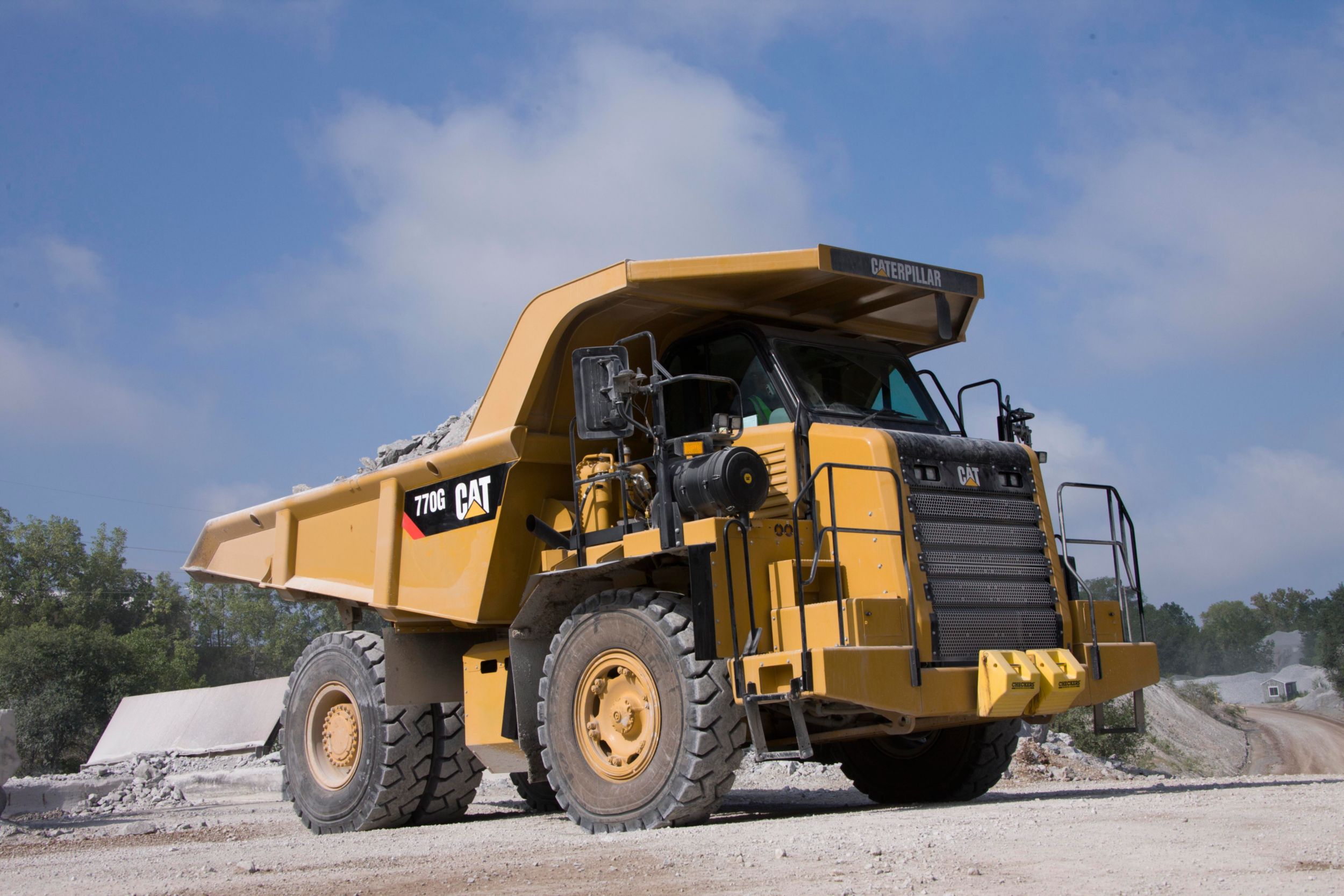 Cat dry front and rear oil-cooled, multiple disc brakes are now hydraulically controlled, reducing maintenance costs. The 770 brakes provide exceptional, fade-resistant braking and retarding for maximum performance and productivity in all haul-road conditions.