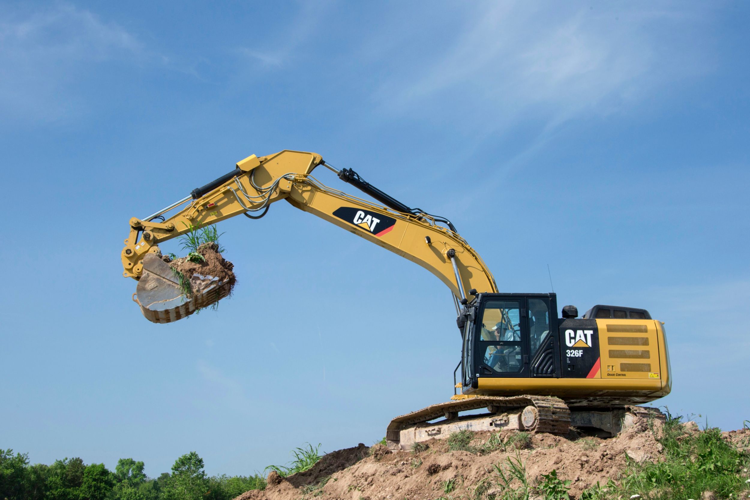 The 326F undercarriage contributes significantly to its outstanding stability and durability. Track shoes, links, rollers, idlers, and final drives are all built with long-lasting, high-tensile-strength steel. Cat Grease Lubricated Track 2 (GLT2) track link protects moving parts by keeping water, debris, and dust out and grease sealed in, which delivers longer wear life and reduced noise when traveling. Optional guide guards help maintain track alignment to improve the machine's overall performance – whether you're traveling on a flat, heavy bed of rock or a steep, wet field of mud.
